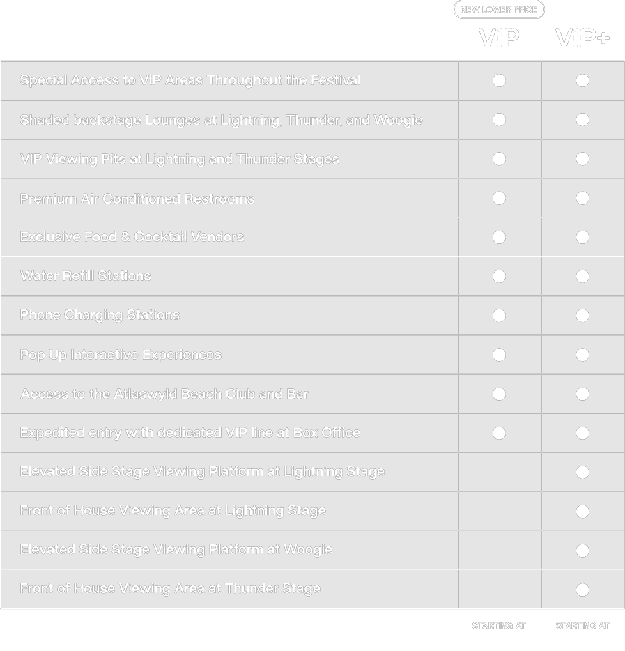 Elevate your experience with dedicated viewing areas, backstage lounges, premium restrooms and much more